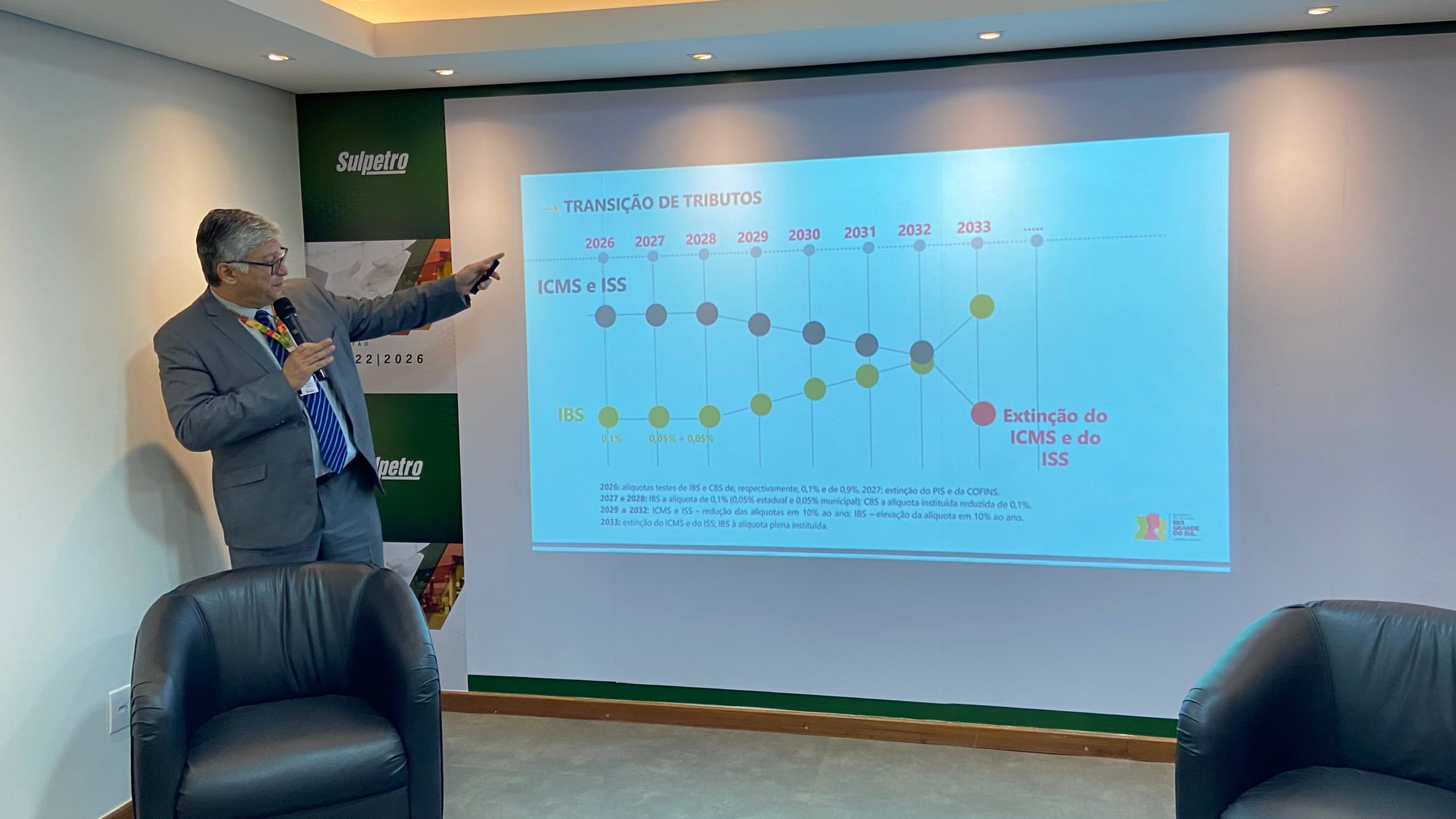 15/07 – Efeitos da Reforma Tributária são apresentados pelo subsecretário da Receita da Receita Estadual do RS, Ricardo Neves Pereira, aos revendedores de combustíveis.